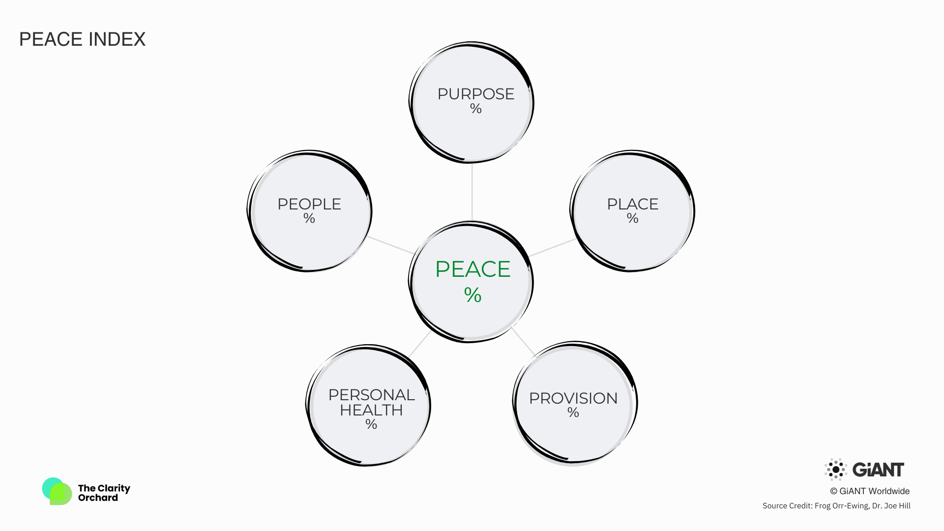 A personalized assessment designed to measure your current level of peace across five key components: purpose, people, place, provision, and personal health. By evaluating these interconnected areas of your life, we aim to provide you with a comprehensive understanding of the factors influencing your overall sense of well-being.